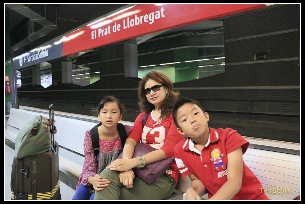 不過一直不停的懷疑....從車廂的擺設和停站的狀態,還有許多不像要去機場的居民,再再引起我的疑慮?好吧!問問旁邊的西班牙大姐?Esto es para el aeropuerto? Si...是...然後她又說了很多我聽不懂的,這下子死啊!果然應了女兒說的,不要亂講西班牙文,不然人家會以為你很行,其實我們真的不行,只會那一句....再三嗡來嗡去後,我幾乎已經可以確認我們搭錯列車了,但並非完全沒救,西班牙大姐說她會告訴我該下車了。然後,我們就在El Prat de Llobregat下車了,原來,方向沒錯,機場線有直達的,也有要在這裡換車的,所以都沒錯!