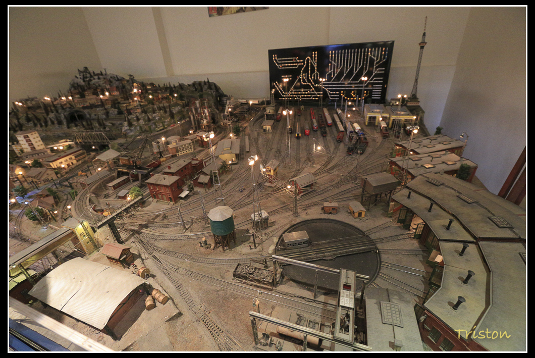 除了各式各樣的火車模型外,最有趣的就是扇形車庫啦!和我們彰化的那一座還真的蠻像的,行行列列的小火車在大概三公分寬的鐵軌上奔馳,都不會脫軌,真酷!