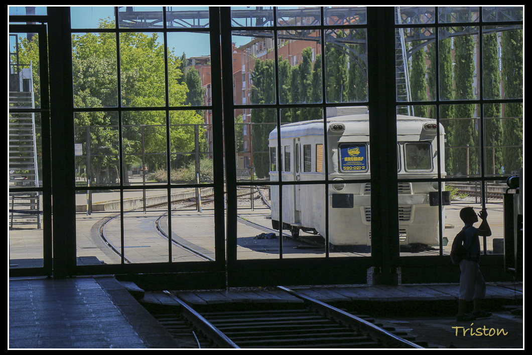 看起來就是機廠的樣子,外頭擺設了一輛西班牙國鐵Renfe的老火車