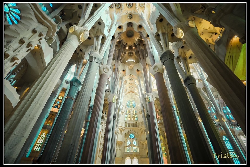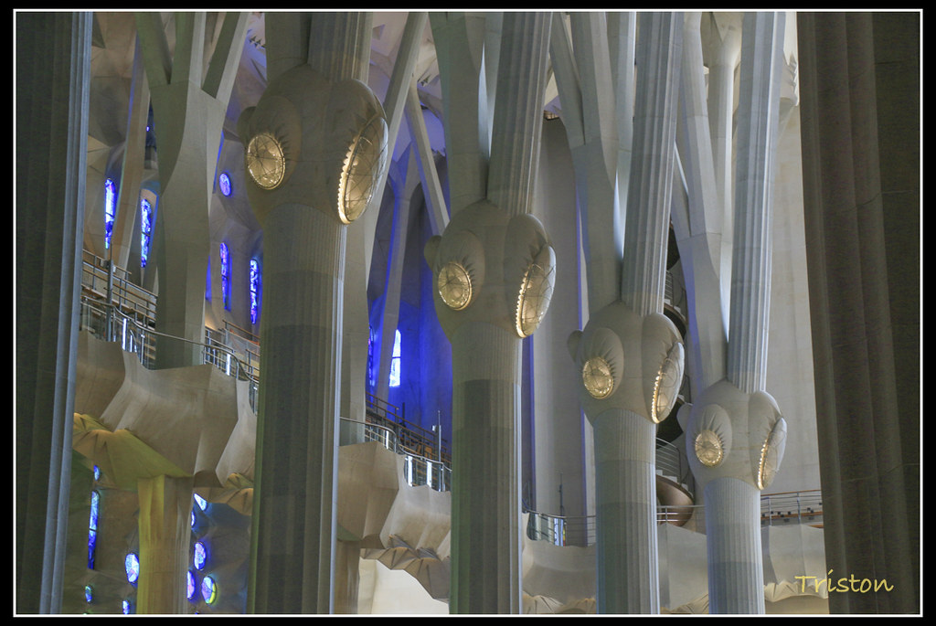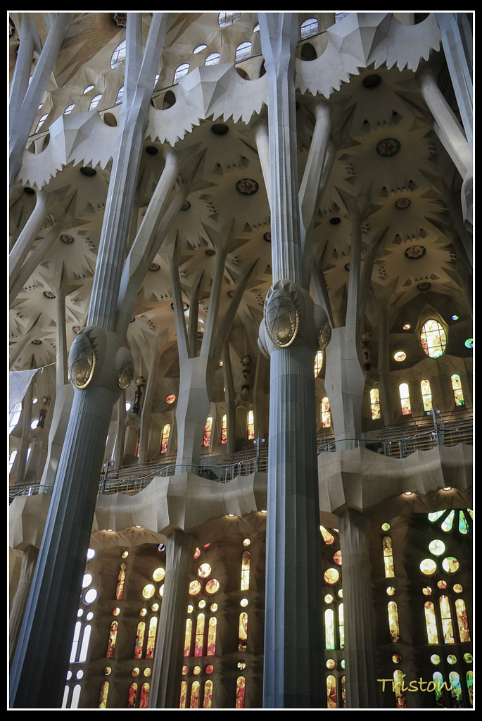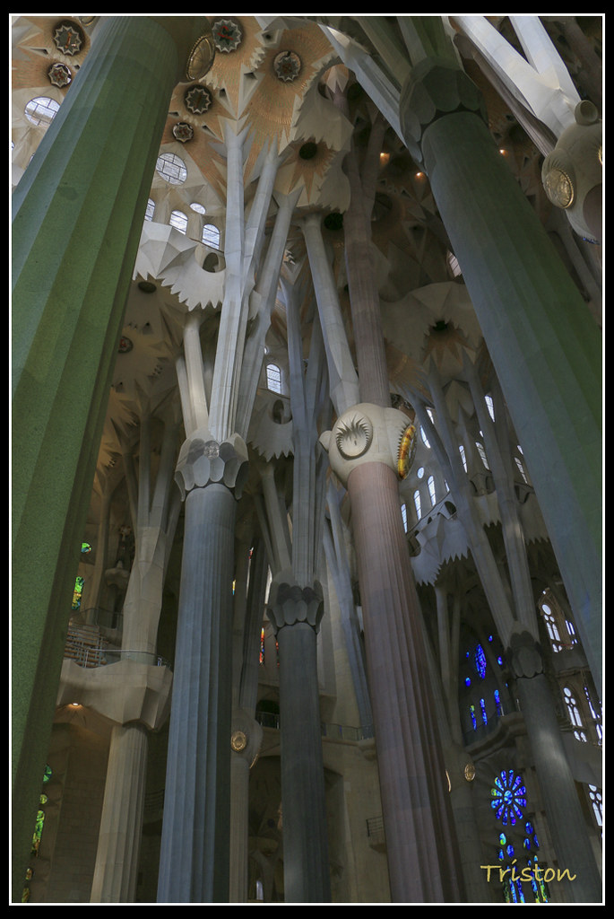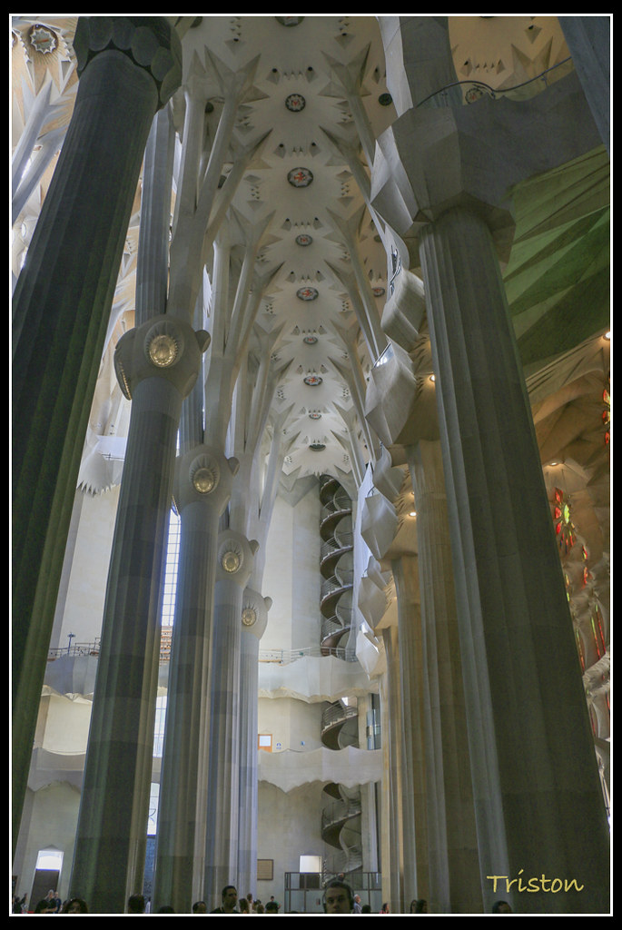 進入教堂內部,很難不為這一束束如西洋芹般的柱子給吸引,更會懷疑高第他到底在想什麼?