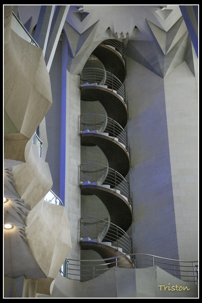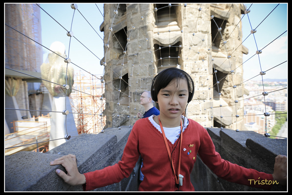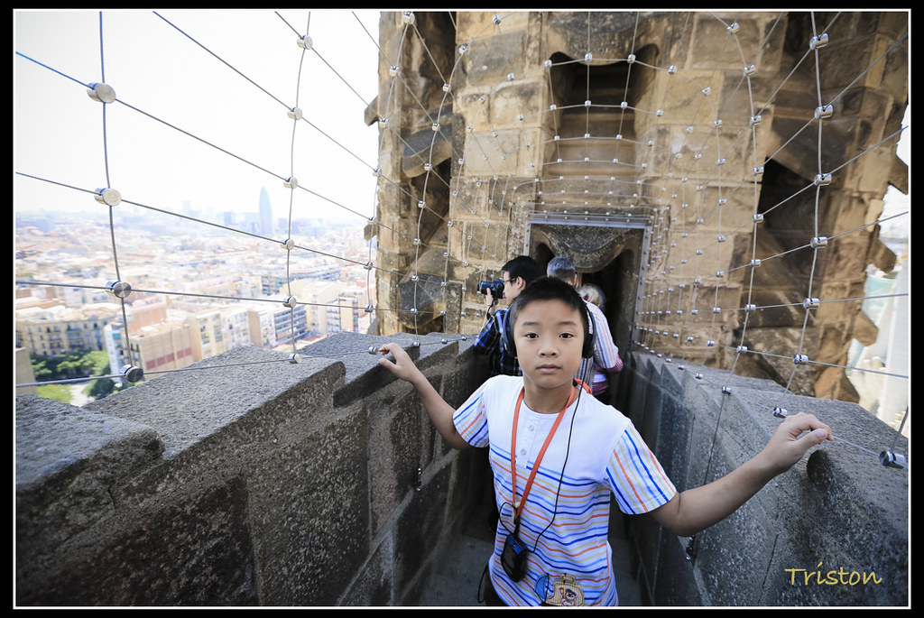 不論到任何教堂或大樓,如果可以登頂,我們幾乎都不會錯過,聖家堂這種世界級的建築,當然也不能例外!登頂的票和門票都是在網路預購的,時間一到,我們就往誕生立面側的電梯口集合!沒錯,就是搭電梯,可能是螺旋梯真是太難爬了,而且又窄,所以一律是電梯上,螺旋梯下!不過有誕生立面和受難立面可以選擇,只要在購票時選定登塔時間,時間到了就搭電梯上頂