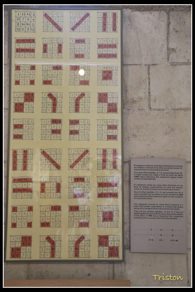方格中的16個數字,有各種不同的加和方式,其結果都是33,意指耶穌死去時的年齡,聖徒約瑟夫在33歲時娶瑪利亞,耶穌基督一共完成了33個奇跡,在《聖經.創世紀》中,上帝的名字總共提到了33次
