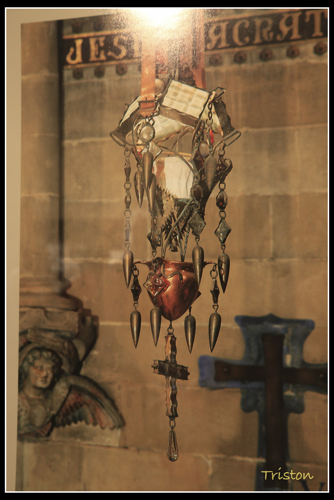 在禮拜堂的中央,華蓋下有一尊受難的耶穌基督高掛在十字架的形像
