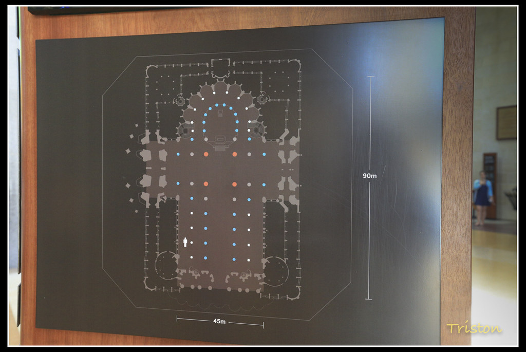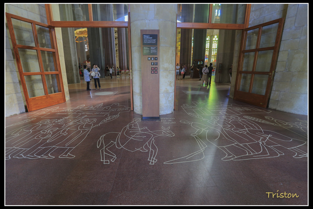 由福音門進入教堂內部的地板上,刻畫了一段聖經的故事,據說是耶穌受難前一週,民眾手拿棕櫚枝歡迎耶穌進入耶路撒冷的情節