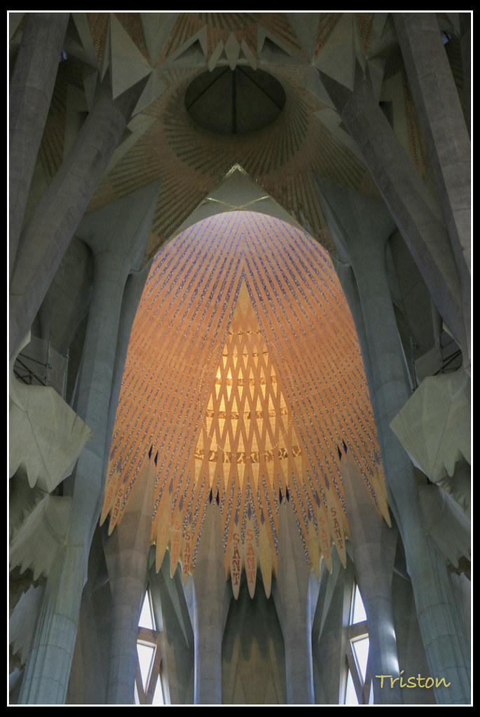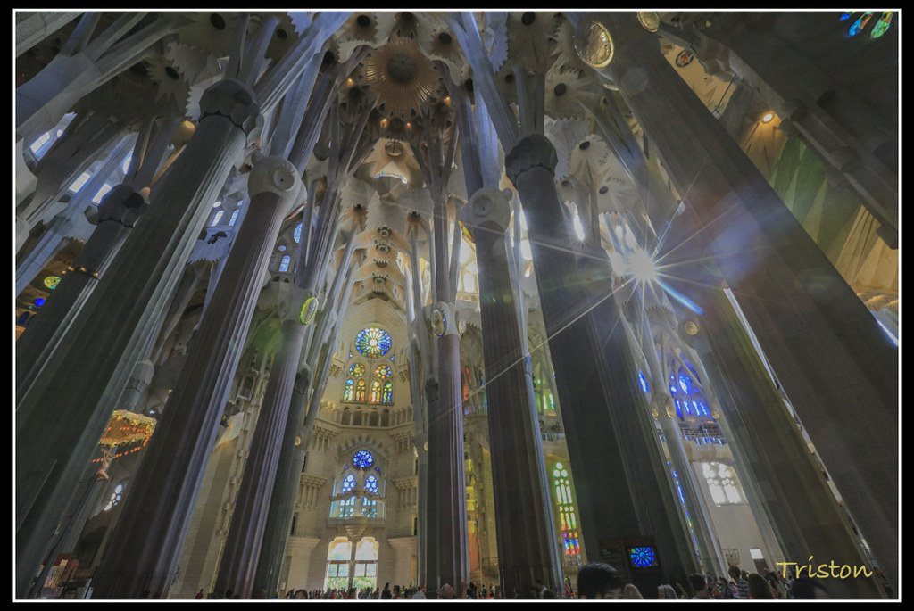 高挑的內殿,簡直讓人屏息,雖然遊客很多,但似乎震懾在高第怪誕的設計和神聖的空間感中,不自主地放低音量