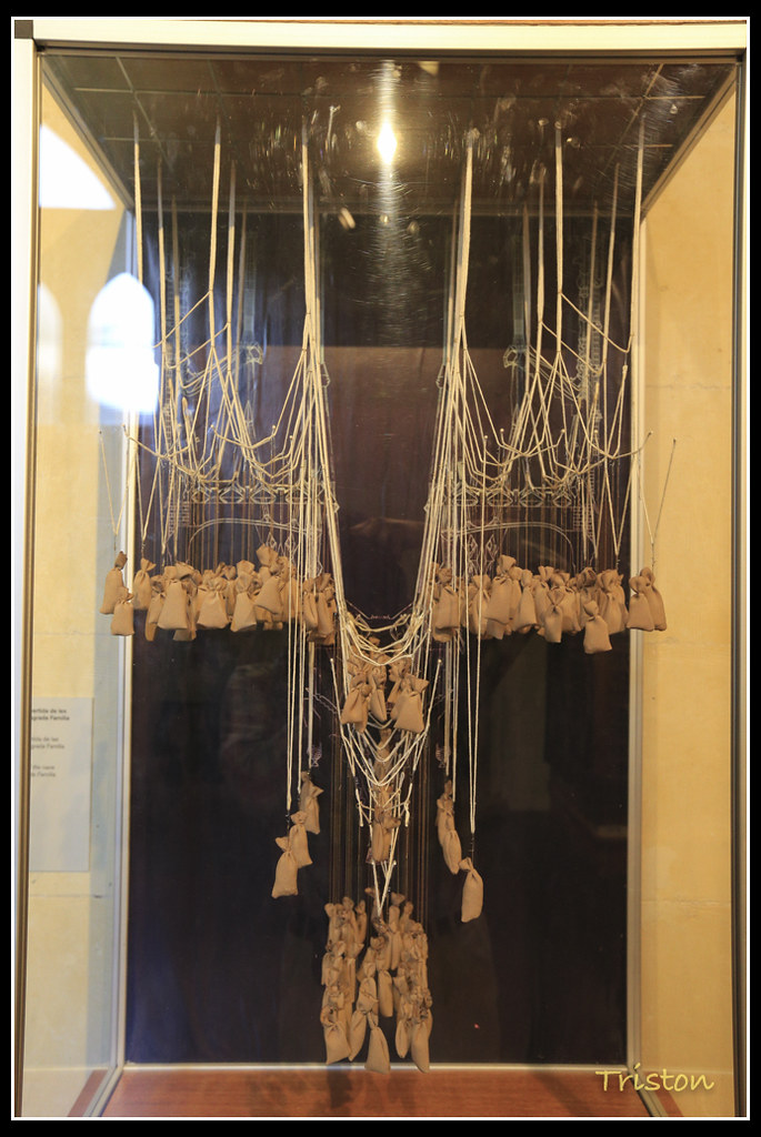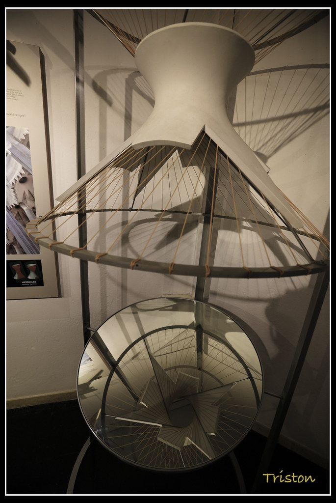 高第建築中最有名的懸鍊線式設計,高第用利用很多小沙袋垂吊起來,模擬受力結果及曲線的變化,但要看出其中端倪,還得再用鏡子反射,才能呈現出建築穹頂結構的變化