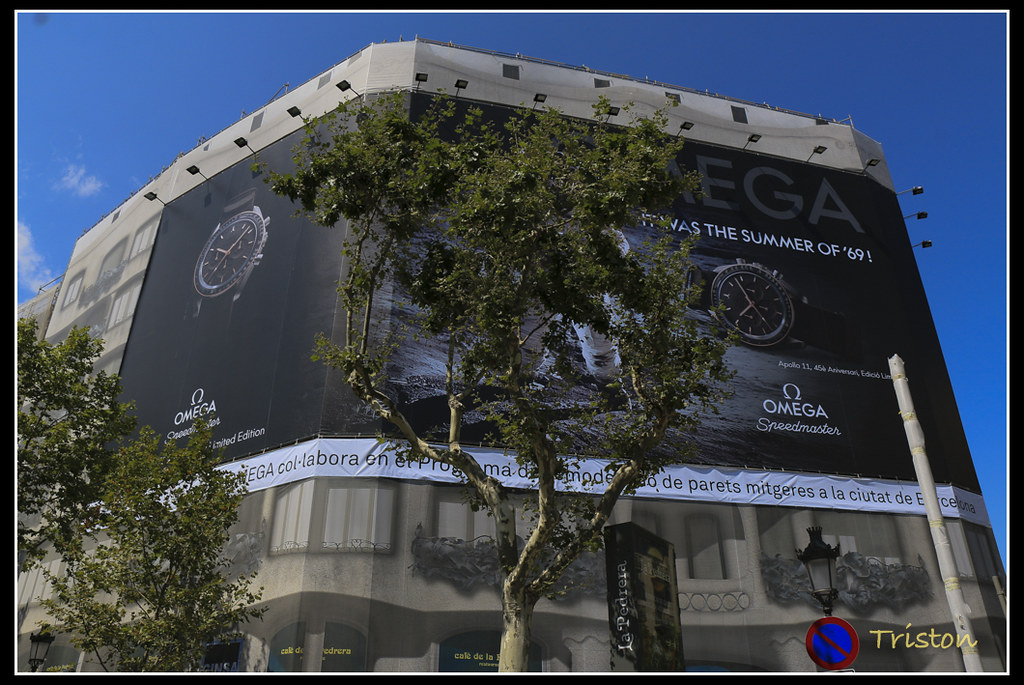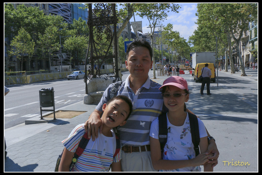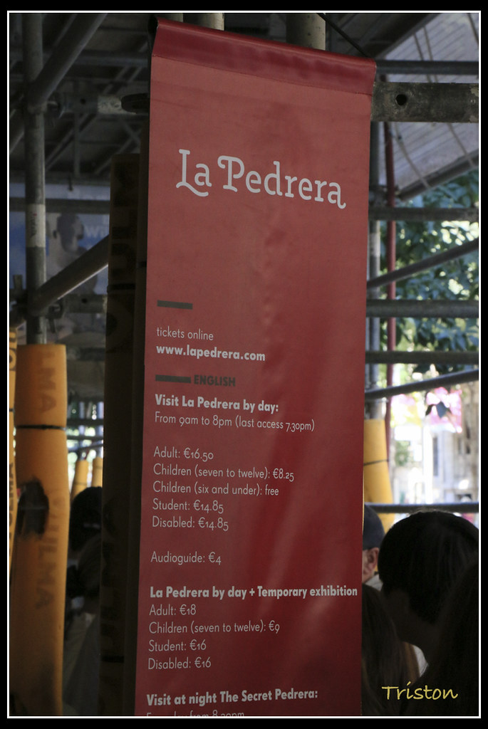 到Diagonal站下車,附近有米拉之家,走過去朝聖朝聖先,轉到Gràcia大道,一時還沒發現米拉之家,定睛一看,才發現她架起了鷹架,竟在整修中, 門票一看,要16.5歐元,猶豫了,我們家四口,兩個小朋友鐵定沒興趣,老婆先前來過了,雖然也忘得差不多了,婚前可沒人幫她寫旅遊報告,但是除了費用,又是心情,對米拉之家的頂樓是有點趣味,但又不忍心把一家子都拖進去,牙一咬,放棄