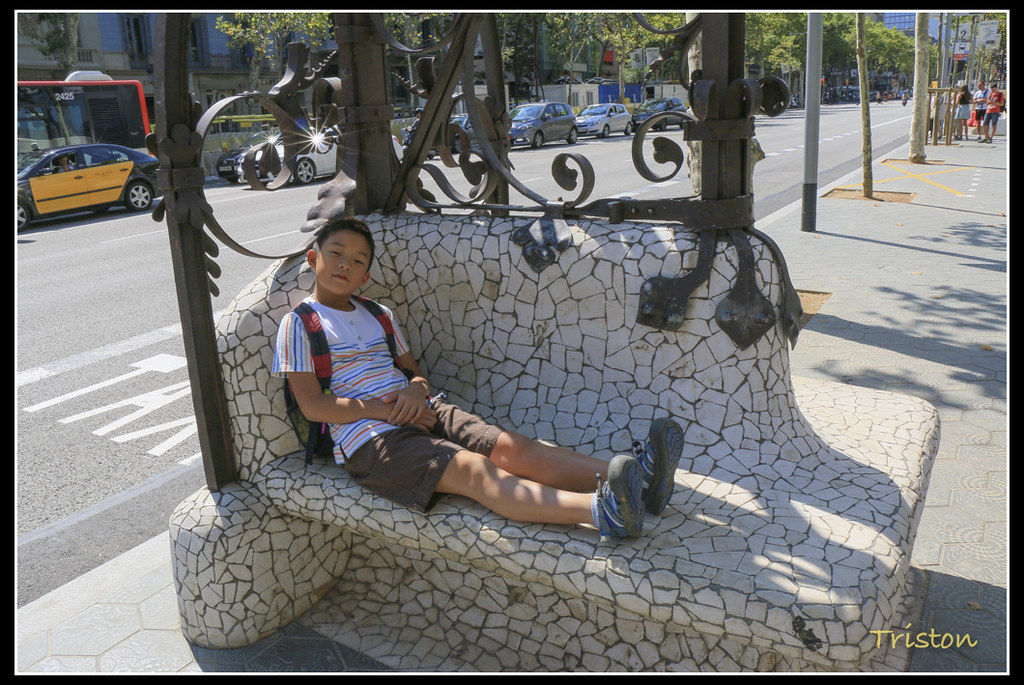 Gràcia大道散步起來特別輕鬆,歐洲的行人步道都特別寬廣,反而汽車道都限縮在兩線道以內,因此沿著綠蔭,一不小心就看到巴特羅之家的奇異造型和攀在屋頂上的那隻變色龍了