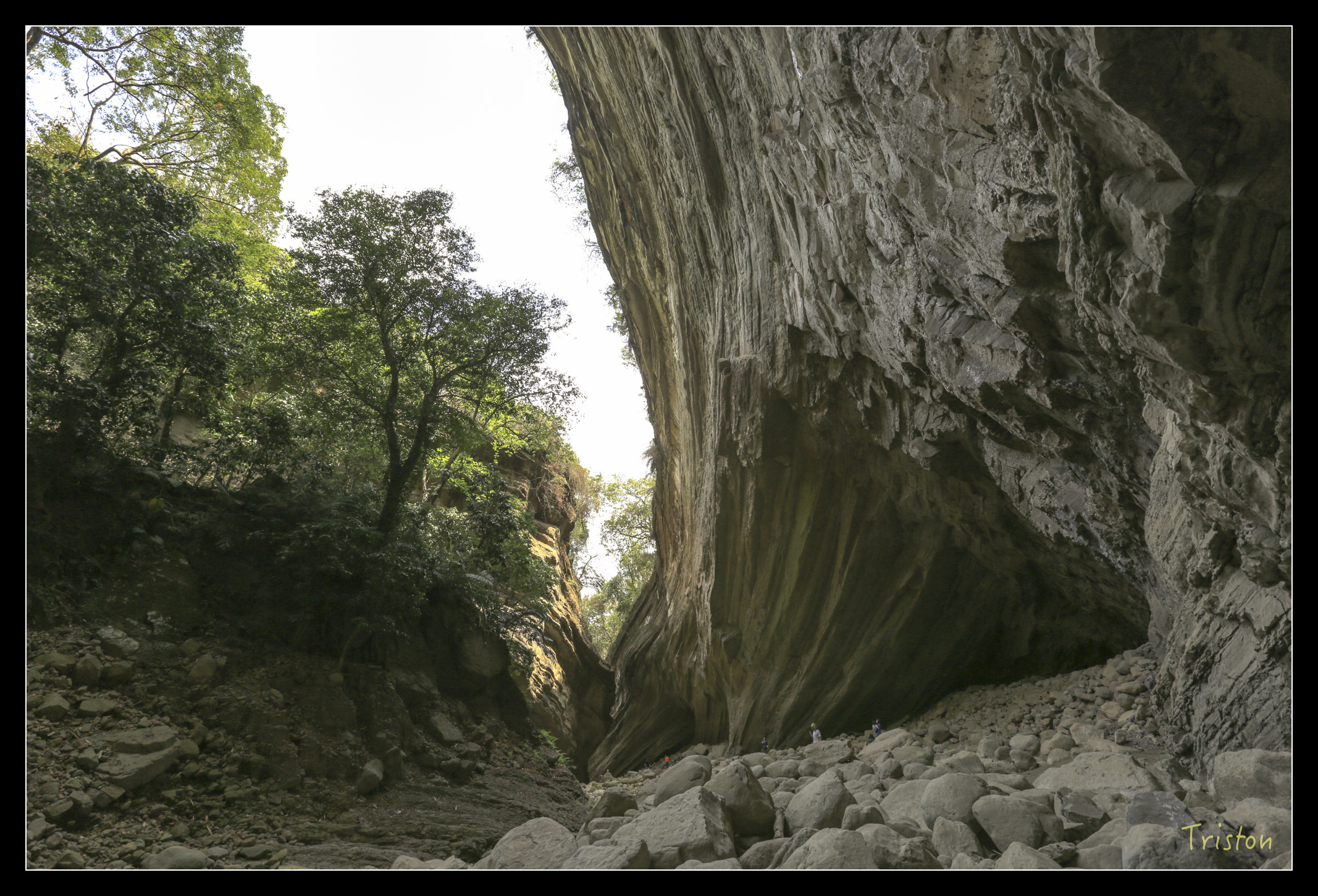 聽說這裡曾有人在此修行,不知是被驅離了還是很快就被頭上的石塊送上天了