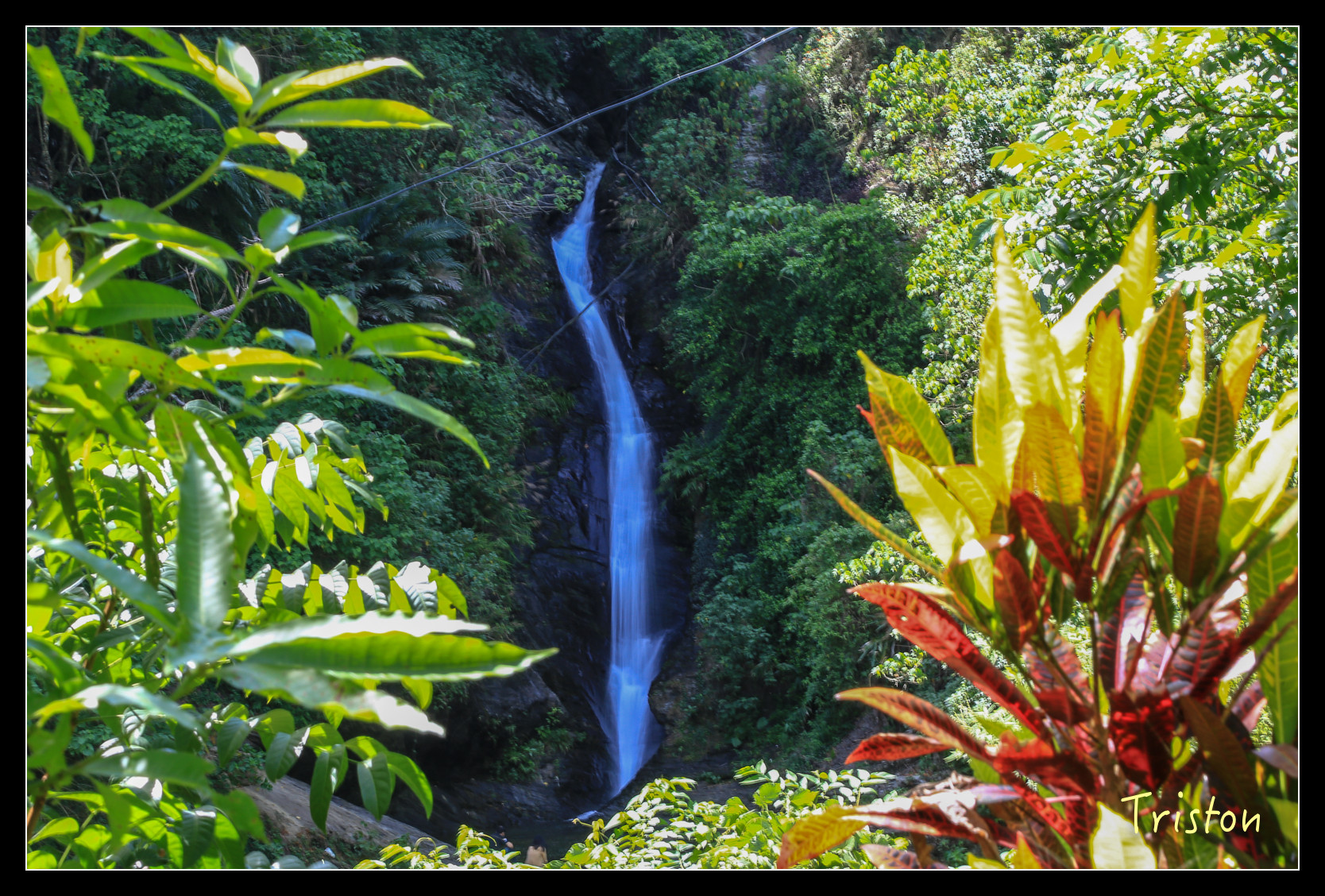 涼山瀑布分為三層,入口處附近是第一層,原本這裡蓄水成潭,在這裡就可以玩水了,不過風災後,腹地大受影響,現在不開放戲水,只有少數人跨過圍籬偷渡到瀑布下。