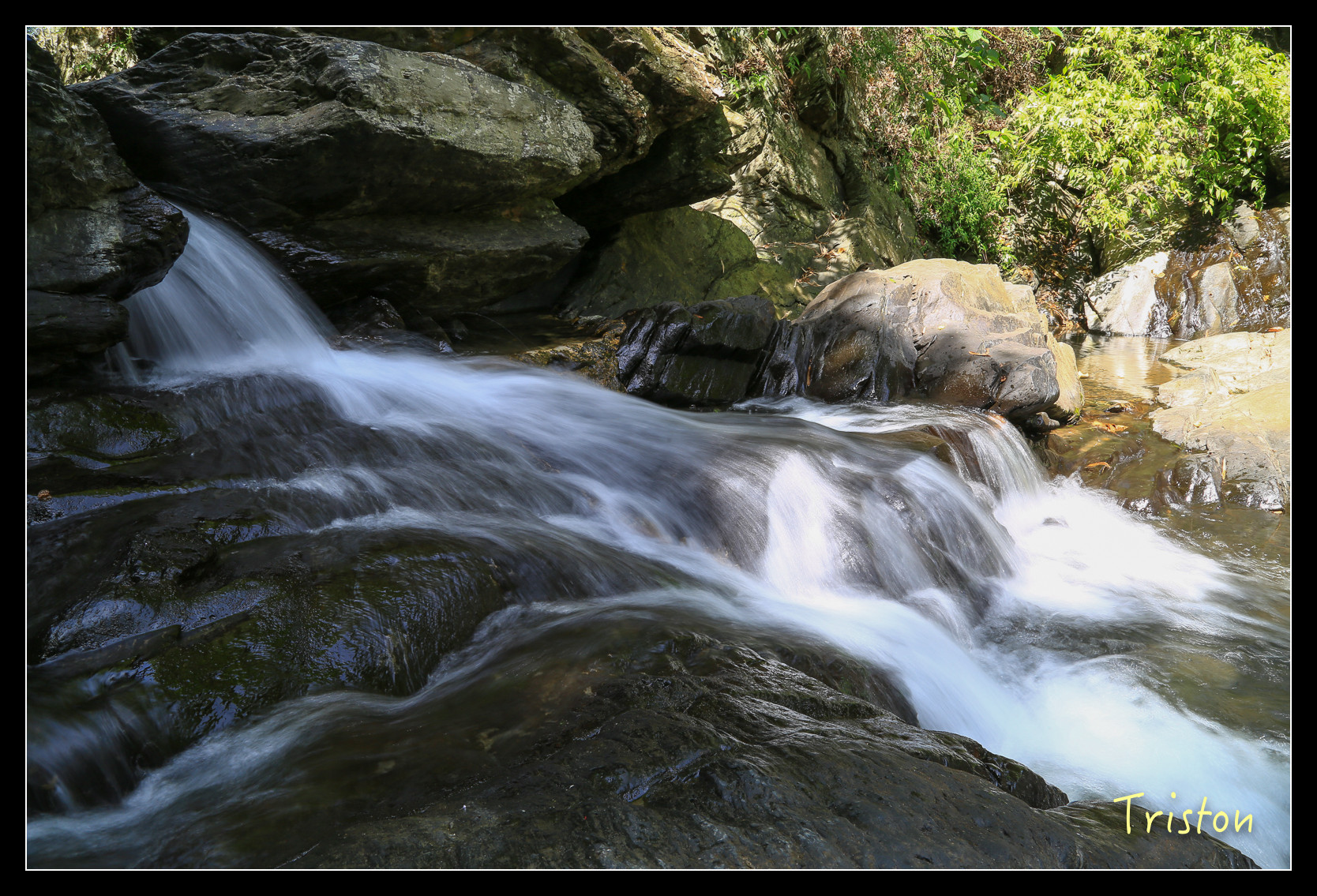 上次到涼山瀑布是2009年,結果玩後不到一個月就發生了莫拉克風災,之後再沒來過,現在涼山瀑布這裡修建了涼山遊憩區,想必是修建的更完善了。沿著牛角灣溪邊上行,溪邊停滿了黃蝶,天氣熱,連蝴蝶都得來補充水份