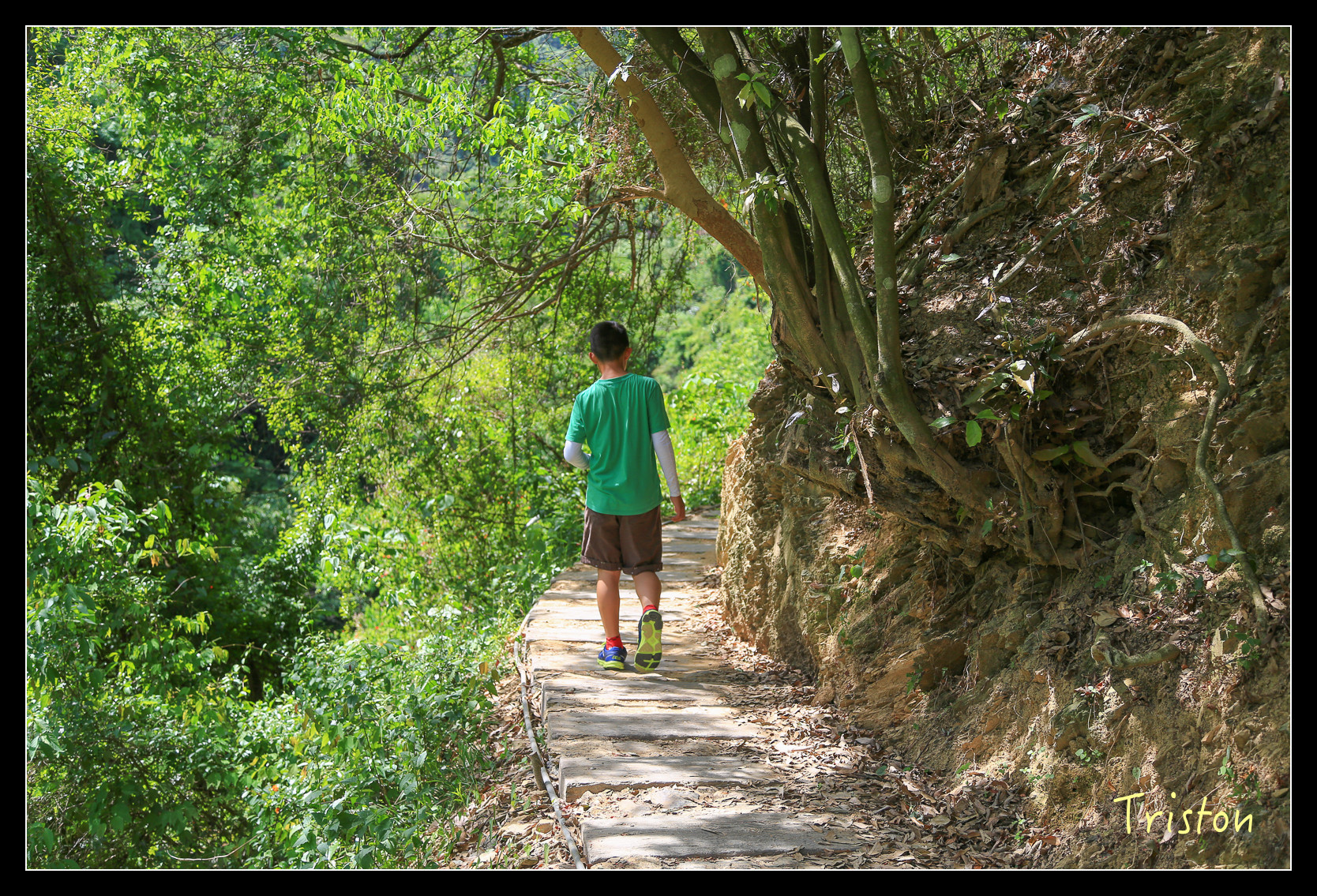 兒子腳程很快,要一路追著他,他很心機,又繞到我後頭去,說是他跟著我走的!