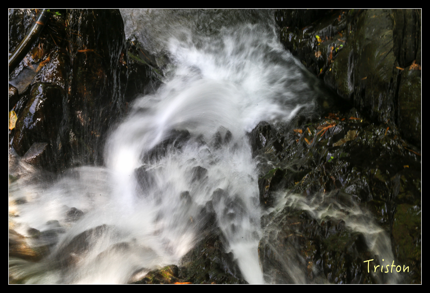 步道終點離瀑布還有五十公尺,得攀著溪邊岩石前進,愈往上去,瀑布的聲音愈來愈大