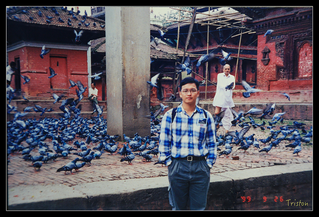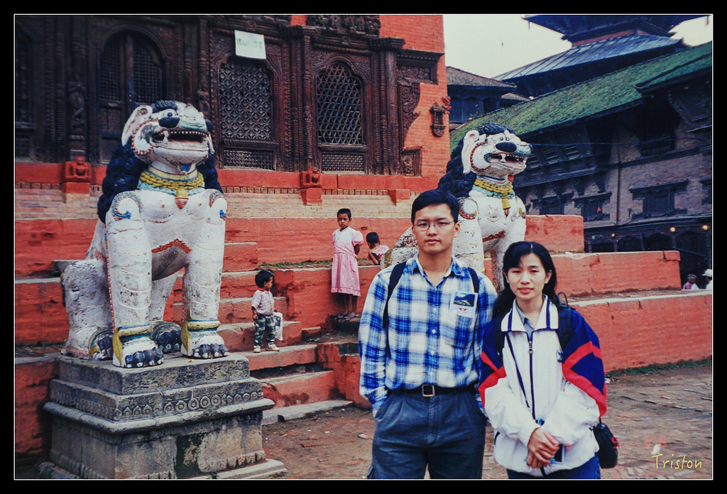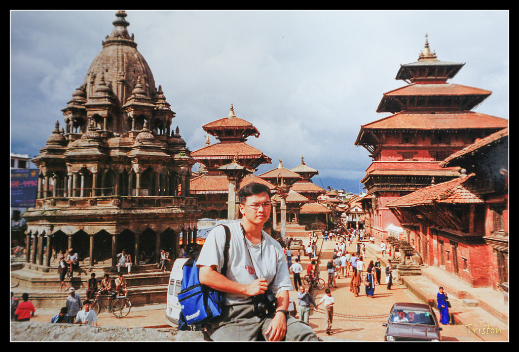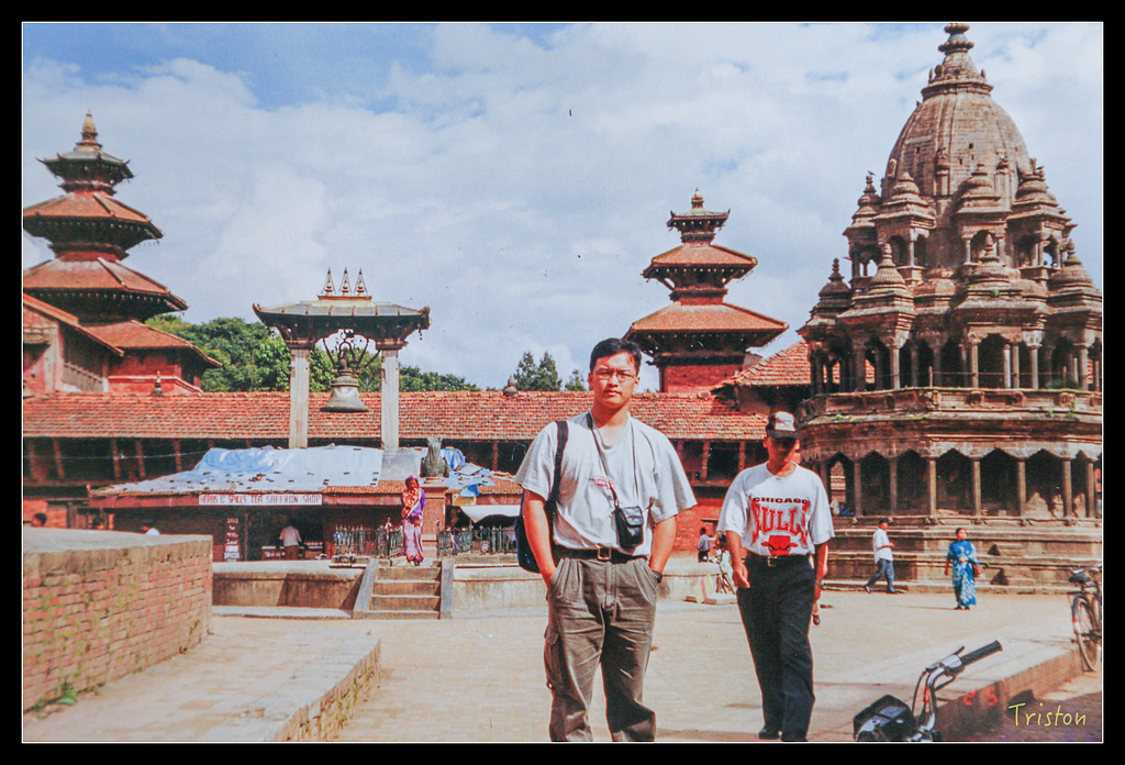 19990925今天一早由波卡拉驅車回到加德滿都,進入加德滿都前,先到帕坦一遊。帕坦(Patan)是加德滿都谷地歷史最悠久的城市,也是谷地的第二大城,當地人稱之為Lalitpur,意指「美麗的城市」。相傳境內有四座佛塔是在印度阿育王(Emperor Ashoka, 304–232 BC)時代所建,帕坦被視為世界上最古老的佛教城之一,擁有136座佛寺及55座多層屋頂廟宇