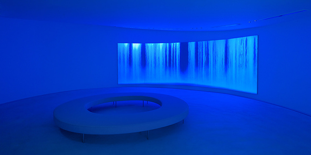 在弧形長椅上,感受到永恆的美感,無論是大自然的,還是千住博的作品