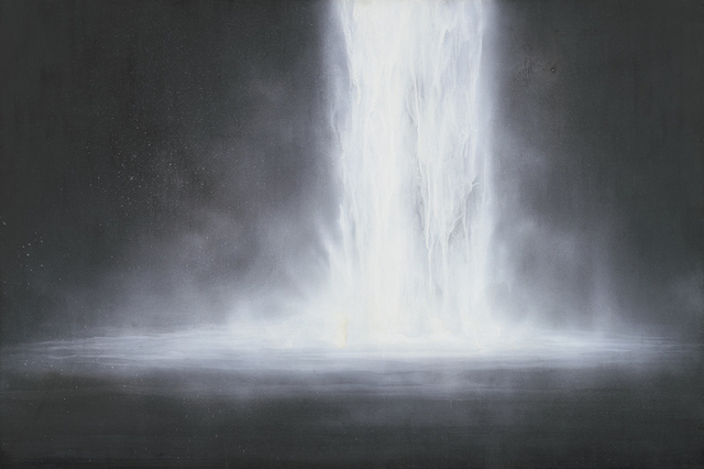 Day &Night 以螢光顏料所創作的瀑布,在日光下,呈現簡單的黑白,但在由無到亮的紫外線照射下,卻發出幽藍的火螢光,創造出白天與黑夜的視覺效果,在這個小房間裡,用光照與聲音,呈現出想像與夢幻