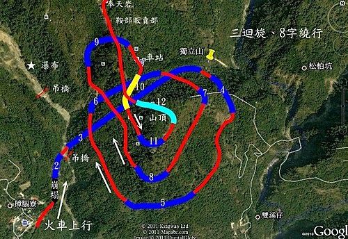 一直被螺旋狀登山鐵道弄得霧煞煞,原來它是日治時期時,工程師河合鈰太郎博士(號琴山)在興建阿里山森林鐵路時,因獨立山的陡峭坡度,使火車無法以正常坡度爬昇而傷透腦筋;有天無意中看到蝸牛,讓他靈感乍現,最後以仿蝸牛外殼形狀,螺旋式舖設鐵道盤繞獨立山三次向上而升,到獨立山車站後採「8」字形路徑離開。獨特的鐵路興築工法,造就阿里山森林鐵路世界聞名的「螺旋狀登山鐵道」。鐵道於1907年完工。螺旋狀登山鐵道由2號隧道(海拔557米),一路呈順時鐘方向盤旋而上,過了九號隧道後,以8字形繞行山頭而成逆時針迴旋,然後才又沿著山麓往梨園寮車站而去..