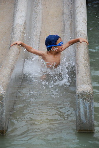 隔了半年..兒子長更大了...現在敢自己玩滑水道了...