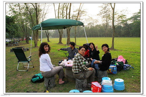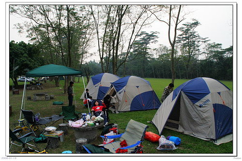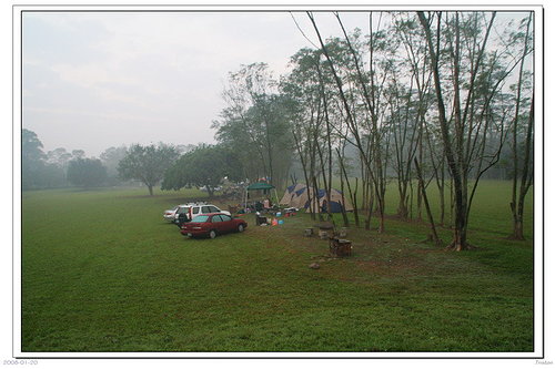 週末二點,由台南市出發,由長治下交流道,約莫三點半就到了營地了.蠻意外的,在穿越了一片荔枝樹林後,一片綠草如茵赫然入目,草原上錯落著幾棵葉子半掉的光臘樹,烤肉區和草原還有一段距離,中間隔了一排桃花心木..感覺還不錯,開闊的草皮讓人心情大爽..