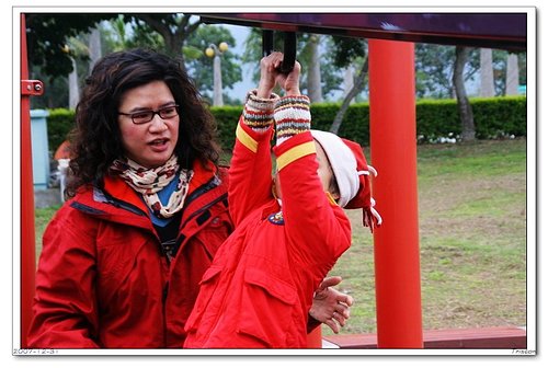 天色不早,只能到森林公園騎騎車,讓小朋友鬆鬆筋骨了,這一波寒流可真有點冷,整個小人包的密不通風的..前兩天還在說,雖然天氣暖化讓冬天有點不太像冬天,可是午後的涼風配上暖暖的冬陽,可真是舒服,上班真是太浪費了;怎麼一放假要出來透氣就變天了.