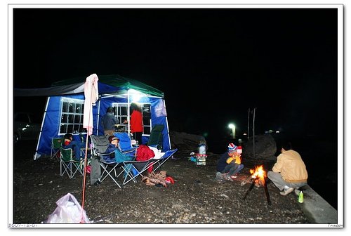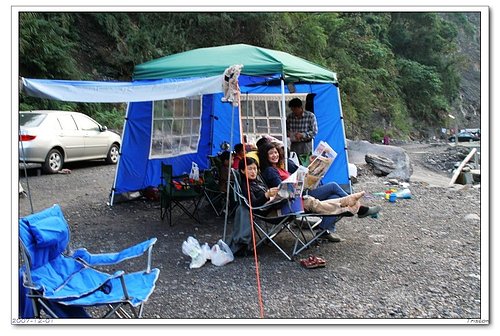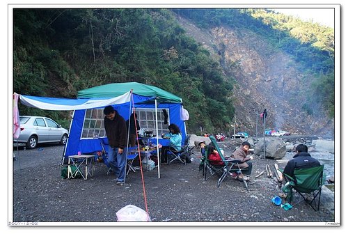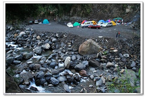 沒想到這地方人也挺多,早來的人大多選在土石流的下方,那裡看來地勢較平坦,所以可以睡起來會比較舒服吧..