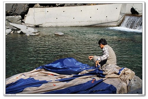 陽光最遠就只能到達水邊,所以只好到水上曬帳蓬囉