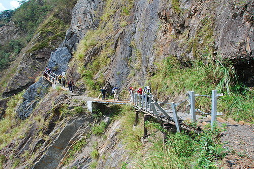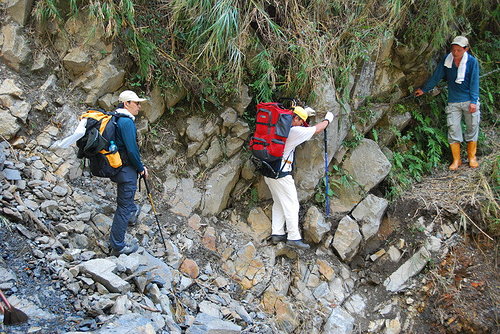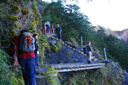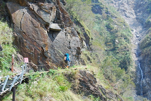 柯羅沙颱風剛過..我們意外地成為開放入山的第一批登山客..路況不太好..我們心驚膽寒地跨過每一個缺口..腳下是百米深崖..