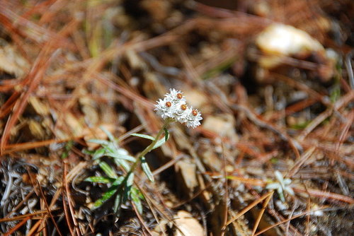 在風雪頻至的野地裡,開了幾朵小白花,那是玉山薄雪草,看起起溫溫柔柔地,一摸,連花瓣都像穿了一身盔甲似的..硬梆梆