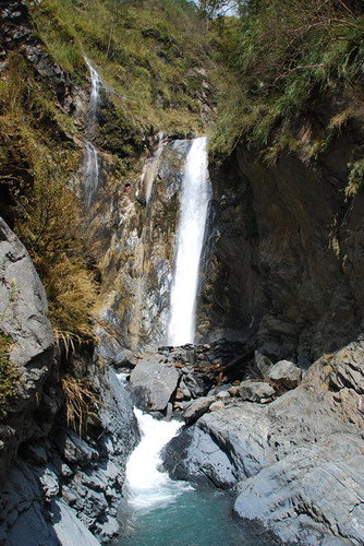 終於走回了雲龍瀑布,只為只離登山口4KM,所以這裡已經可以看到許多來東埔泡湯的遊客,經由父子斷崖進來...那二個外國人會下去游泳嗎?