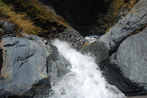 傾瀉而下的瀑布..直下數十米的深谷..磅礡的氣勢,讓站在橋上的我.深受震撼