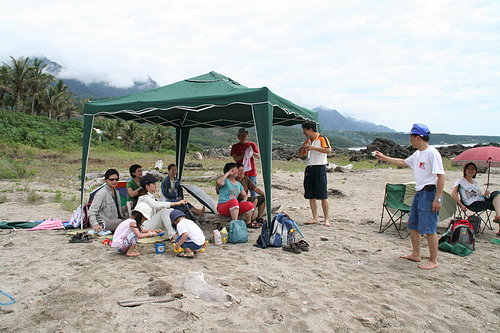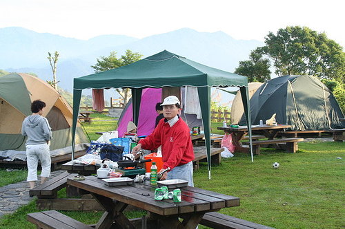 可現在日頭毒辣的很..還是把炊事帳給搬出來吧