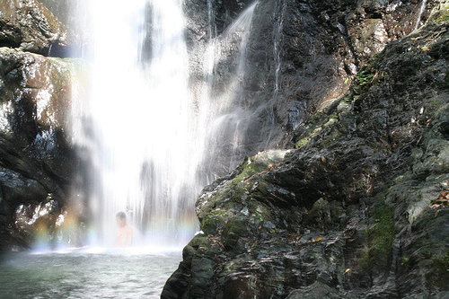 潭邊竟有一位阿婆在此洗衣服,莫非瀑布邊的負離子具有獨特的神效,可以讓人延年益壽嗎?