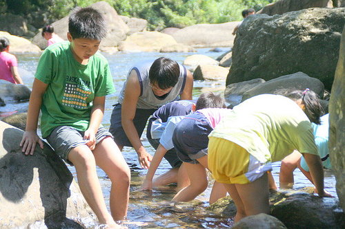 小子們可是認真的玩著,專注著意志,好像非得把水中的溪魚逮到不可..