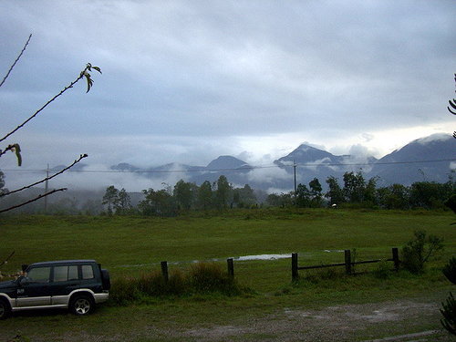 顏氏牧場 (東經120.904923 北緯23.930532) 951216 下雨天..冷..乍雨還晴時,水社大山就冒出頭了