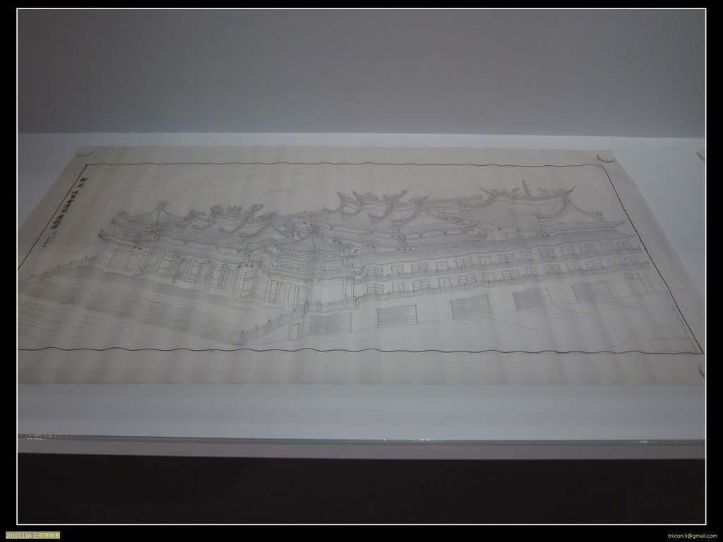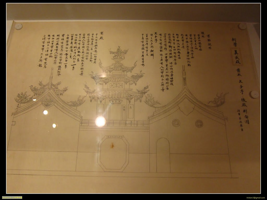 新營真武殿的設計草圖-原來當一名匠師,不但要手巧能捏,還要心細能畫,如果細看的話,還可以發現王保原師傅的書法還很秀麗