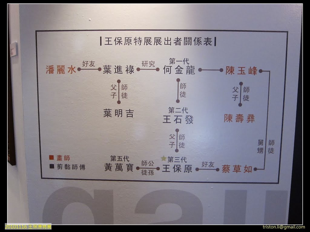 | 王保原特展展出者關係表..有不少人的關係都是父子相傳的 |