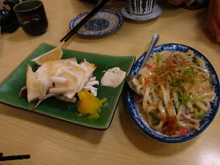 | 烤軟絲和炒烏龍,烤軟絲是我每次去伊都必點的好菜,新都巷更不遑多讓,烏龍麵算是我對不起你了..因為菜太多,沒把你吃完 |