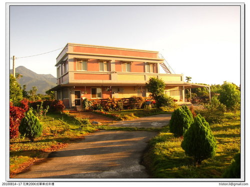 這就是我們今天的住宿點-綠野森林,真是給他有夠幽靜的,依照網路的地圖,看來應該就在佛祖街入口不遠的地方才對,結果隨著汽車補給隊先行的不斷回報,有沒 有走錯路啊?然後循著還算仔細的指標,走進鄉間小徑,開過田梗路,終於在一片牧草發現了世外條桃源......不過這地方真的蠻適合我們的活動目的,而且 因為偏僻所以我們也就可以無所忌憚的大吵大鬧啦....價錢也OK..包棟五間房7000元,加床300/人..