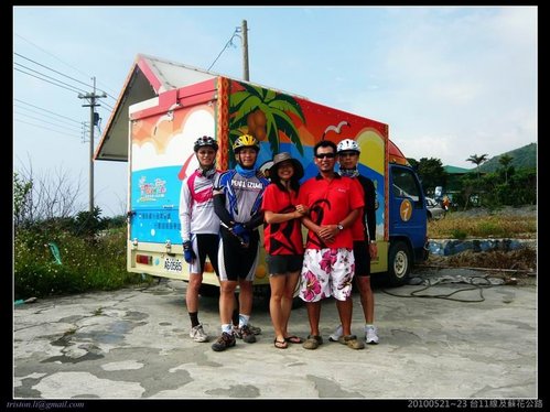 那一對笑的很燦爛很陽光的就是幸福卡卡夫妻檔囉..後頭則是他們的謀生工具..移動咖啡車..每次看到幸福卡卡,對不禁對比地想到在台積電上班的高 中同學,生活中只有上班和不斷的人事傾軋,十點十一點多回到家,面對的是一間沒有女主人的公寓,女主人和兒女生活在繁華的台北市,說要離職先匯三千萬來, 不然生活沒有保證!同學為了工作還去唸了電機博士,面對工作只能苦撐到累倒或被鬥下來的那一天......我也不知道他的目標是什麼...同學也不知 道....