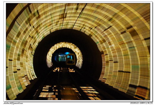 不得不配服大陸人的商業頭腦啦,明明是一個江底隧道,卻硬是包裝成什麼隧道,坐在像纜車似的車廂內,隧道邊裝了一些無聊的燈光和雷射,硬是一個人又坑了我40RMB...是搶人是不是啊....