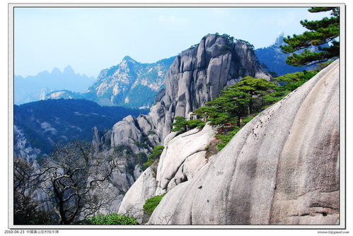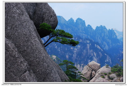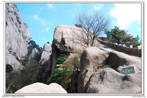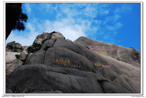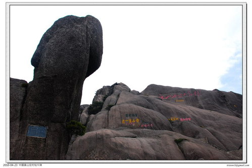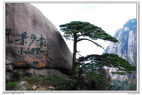 迎客松-旁邊有朱德的題字.江山如畫.大陸許多景點都會有當年中華人民共和國的創建英雄的題字.想來得天下後,自然是志得意滿,不留兩手怎能顯得自 己文武全才....自古以來,成者為王,敗者為寇,我們讀歷史的時候不都冠個"匪"字,如果當年共產黨不成事..也不就只留個像黃巾,闖王的亂名而已嗎?