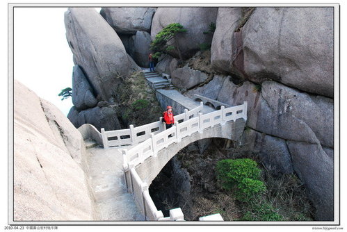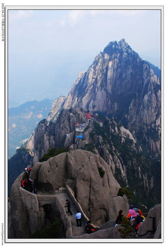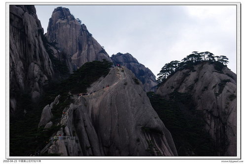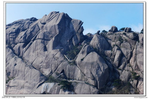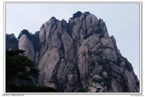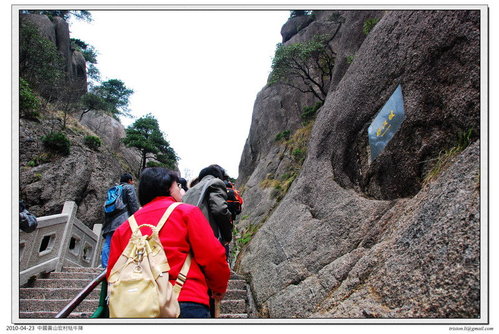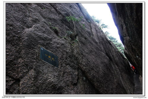 往迎客松的樹下走去,就是往天都峰的梯道了,不過天都峰聽說4/1又封,開始進入五年的保育期,所以這次我們無緣親炙天都峰
