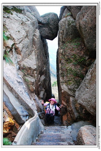 一線天看來陡,其實也還好,不過頭上那個石頭卻不偏不倚的卡在石縫,真是奇特.