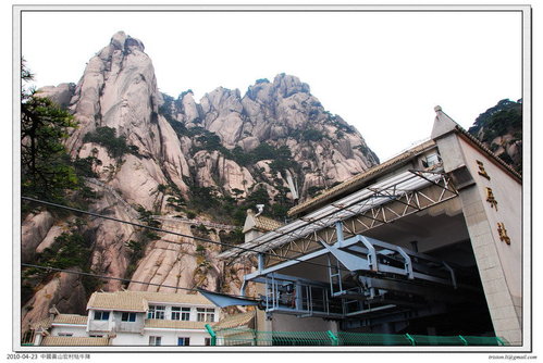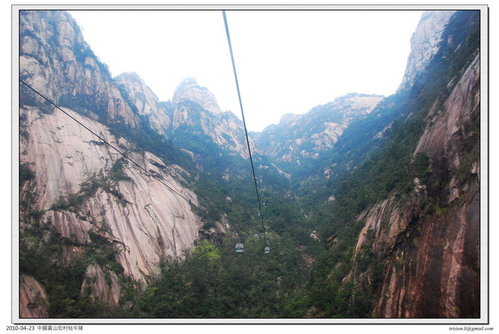我們從白雲景區的玉屏站搭纜車上山,大陸到處都是纜車.這不失為一個發展觀光的好辦法,不然要每個遊客揹背包上山也不成,像台灣直接殺一條馬路上 去,更蠢!搭纜車,不就是排隊嘛(基本上是不怕碰..硬擠..跟大陸同胞在一起,要狠,一示弱客氣就滾到後邊去了)半個多小時,就上山囉