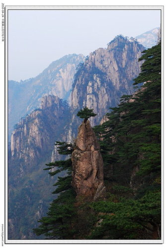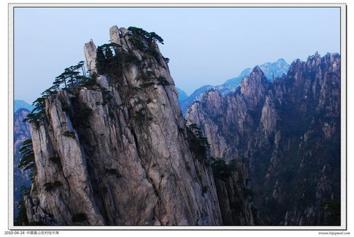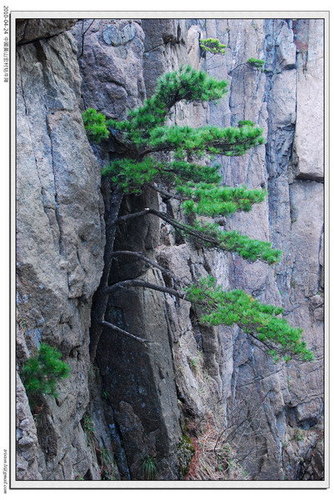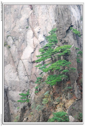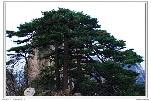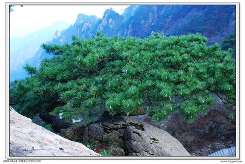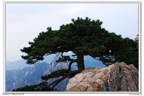 黃山松..應該和台灣的二葉松相同...黃山松奇在生長在奇岩怪石間,一抺綠意便成了黃山的最佳點綴,而台灣二葉松長年在高山上受強風吹襲,卻成就了另一種堅苦卓絕的美感