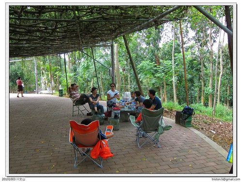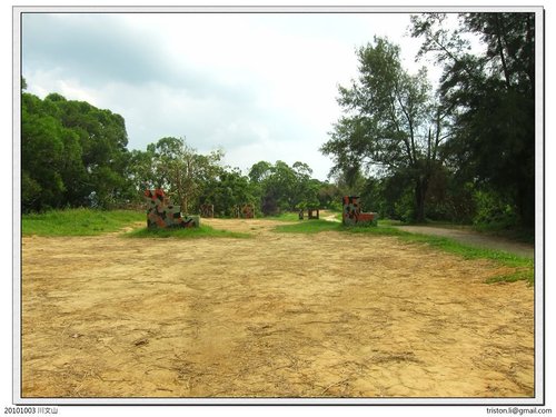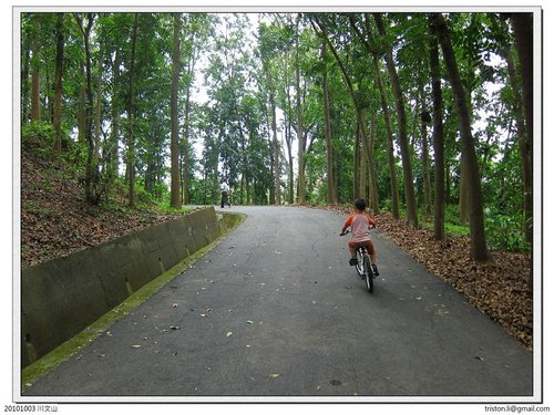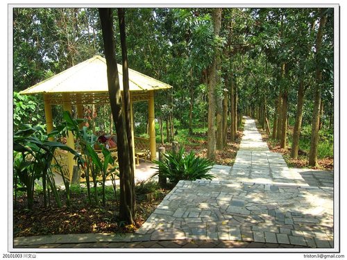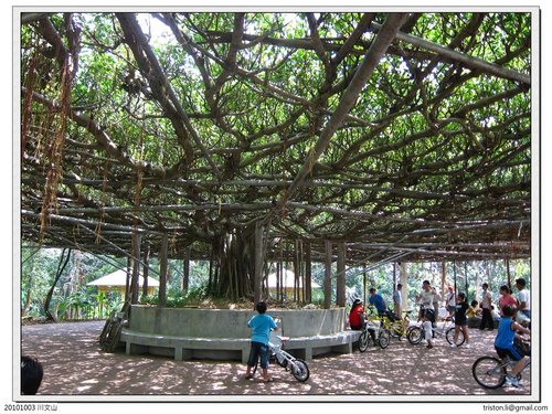順道一提,川文山其實是私人的土地,原本是占地十四公頃多的梯田式芒果園,官田鄉民"賴顯明"先生把自己的土地拿來做造林,然後再開放給民眾休閒旅 遊,而且又不收費,另外也有部份土地是國軍在官田大內營區的訓練場地,拜部隊管制再加上賴顯明"先生努力植樹之賜,這裡遍植了上萬株的桃花心木、雞木、樟 樹,還有幾棵超大的榕樹,來走一趟就知道有多大!