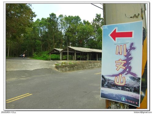 從拔林派出所右邊的小徑上行,穿越拔林村里的老厝後,就可以看到左手邊有石棉瓦棚,不知是誰搭的,可能是部隊的休息場所吧!右轉沿著路上去就是停車 場了,十月剛好是菱角的季節,所以電線桿上還罕見的掛了一張指示牌!這種地方大概沒什麼利益吧!所以我看官田鄉公所也不會很關心它!如果不是有心來找,或 有朋友領來,是找不到的!