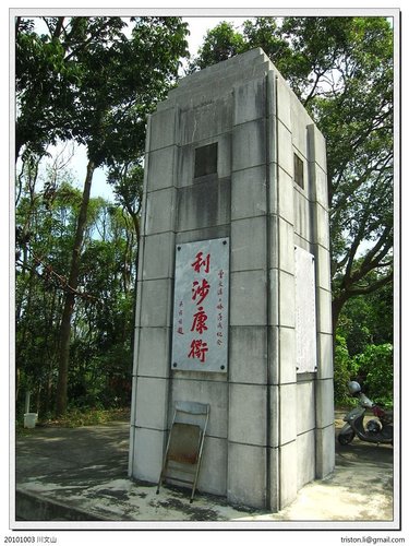停車場上有一座曾文溪堤防落成紀念"利涉康衢"