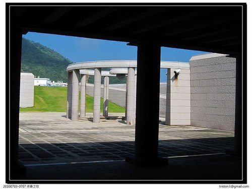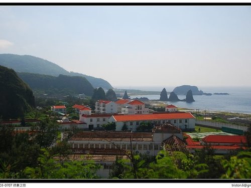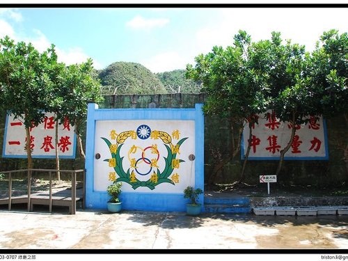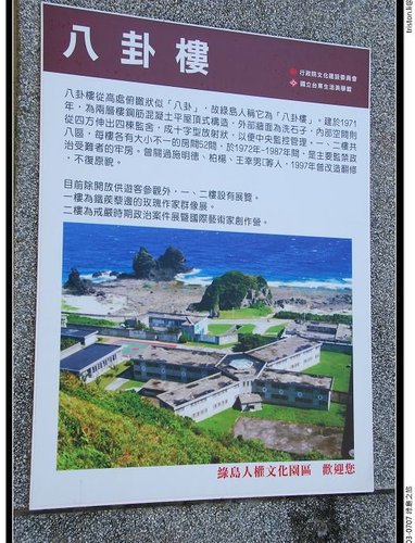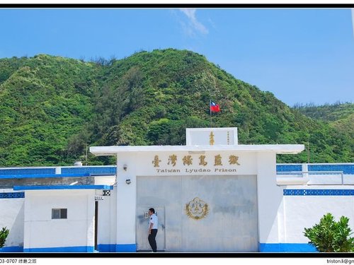 綠島監獄-這可是現在還服役中的監獄吔!聽民宿主人說,這裡的受刑人都是重刑犯或一清專案的大哥們,修行年限都至少六七年以上的!綠島其名是因為島 上一片翠綠,還是因為聽到要到綠島受刑臉就綠了呢?反正這個地方沒開放,我們的機車也就繞了一下,拍一張旗正飄飄的國旗就走了!大哥們怕吵,我們也就不打攪了