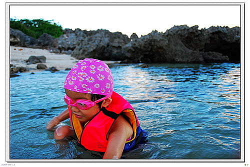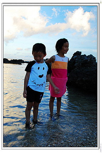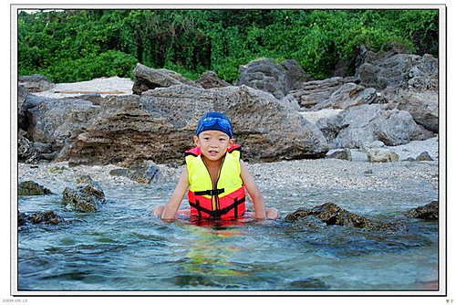 北緯21.55度的秘境海灘是我們家的最愛,人煙稀少的沙灘總算可以稍微擺脫一下墾丁的喧囂,這裡被礁石環抱,巴士海峽的浪到了這裡,只剩下淺淺的 浪花,水底下有不少彩色的鰈魚,礁石上也可以發現許多有背著殼的寄居蟹和有點噁心軟軟的海參,和小孩在這裡浮潛,是令人放心的一件事.這是一個鮮為人知的 墾丁秘境.